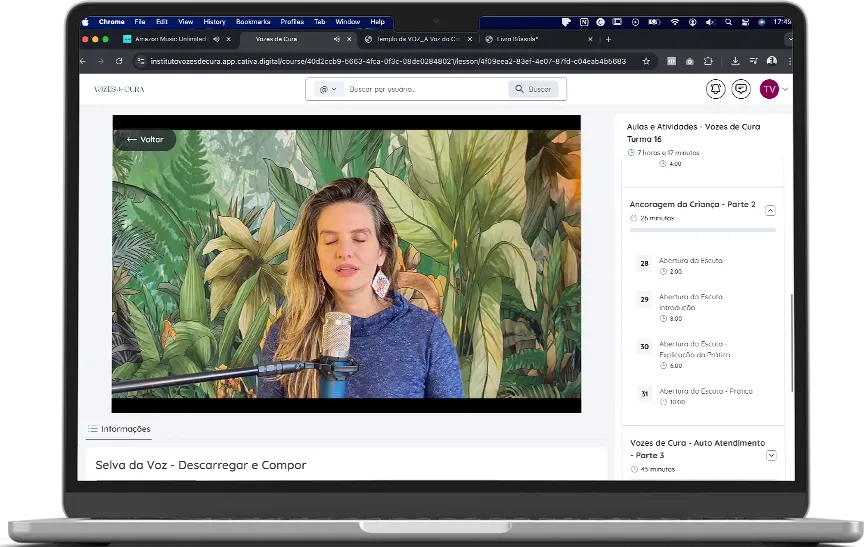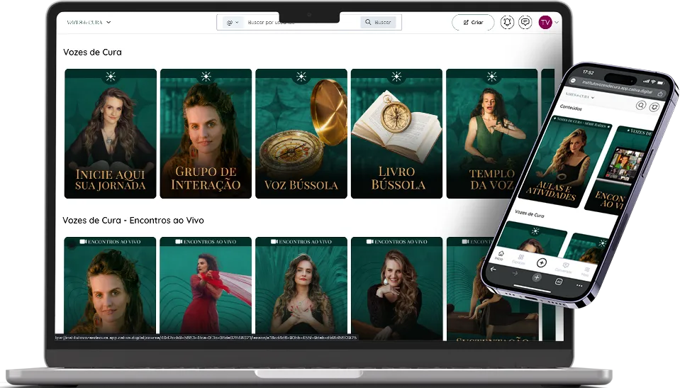 Enquanto outros métodos treinam a voz de fora pra dentro, o Vozes de Cura desperta a sua voz original — a que nasce do corpo, vibra na alma e cria o novo.